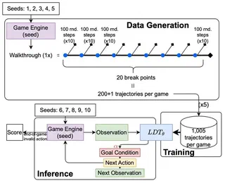 Text-based game environments are challenging because agents must deal with long sequences of text, execute compositional actions using text and learn from sparse rewards. We address these challenges by proposing Language Decision Transformers (LDTs), a framework that is based on transformer language models and decision transformers (DTs). Our LDTs extend DTs with 3 components: (1) exponential tilt to guide the agent towards high obtainable goals, (2) novel goal conditioning methods yielding better results than the traditional return-to-go (sum of all future rewards), and (3) a model of future observations that improves agent performance. LDTs are the first to address offline RL with DTs on these challenging games. Our experiments show that LDTs achieve the highest scores among many different types of agents on some of the most challenging Jericho games, such as Enchanter.