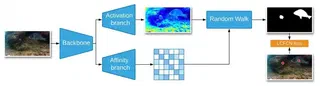 Estimating fish body measurements like length, width, and mass has potential applications in marine and aquaculture productivity. The paper proposes a segmentation model requiring only point-level supervision (single click per fish, ~1 second per fish) rather than per-pixel labels (up to 2 minutes per fish). The method uses a fully convolutional neural network with two branches: one outputs per-pixel scores, another outputs an affinity matrix. These are combined using random walk refinement and trained end-to-end with LCFCN loss, termed Affinity-LCFCN (A-LCFCN). Experiments on the DeepFish dataset show A-LCFCN outperforms fully-supervised models at fixed annotation budgets and achieves better results than standard baselines.