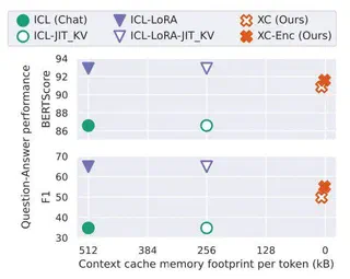 In-context learning approaches typically leverage prompting to condition decoder-only language model generation on reference information. Just-in-time processing of a context is inefficient due to the quadratic cost of self-attention operations, and caching is desirable. However, caching transformer states can easily require almost as much space as the model parameters. When the right context isn’t known in advance, caching ICL can be challenging. This work addresses these limitations by introducing models that, inspired by the encoder-decoder architecture, use cross-attention to condition generation on reference text without the prompt. More precisely, we leverage pre-trained decoder-only models and only train a small number of added layers. We use Question-Answering (QA) as a testbed to evaluate the ability of our models to perform conditional generation and observe that they outperform ICL, are comparable to fine-tuned prompted LLMs, and drastically reduce the space footprint relative to standard KV caching by two orders of magnitude.