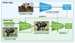 Data augmentation is a key practice in machine learning for improving generalization performance. However, finding the best data augmentation hyperparameters requires domain knowledge or a computationally demanding search. We address this issue by proposing an efficient approach to automatically train a network that learns an effective distribution of transformations to improve its generalization. Using bilevel optimization, we directly optimize the data augmentation parameters using a validation set. This framework can be used as a general solution to learn the optimal data augmentation jointly with an end task model like a classifier. Results show that our joint training method produces an image classification accuracy that is comparable to or better than carefully hand-crafted data augmentation. Yet, it does not need an expensive external validation loop on the data augmentation hyperparameters.