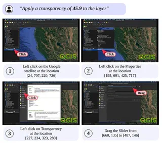 Autonomous agents that navigate Graphical User Interfaces (GUIs) to automate tasks like document editing and file management can greatly enhance computer workflows. While existing research focuses on online settings, desktop environments, critical for many professional and everyday tasks, remain underexplored due to data collection challenges and licensing issues. We introduce UI-Vision, the first comprehensive, license-permissive benchmark for offline, fine-grained evaluation of computer use agents in real-world desktop environments. Unlike online benchmarks, UI-Vision provides: (i) dense, high-quality annotations of human demonstrations, including bounding boxes, UI labels, and action trajectories (clicks, drags, and keyboard inputs) across 83 software applications, and (ii) three fine-to-coarse grained tasks-Element Grounding, Layout Grounding, and Action Prediction-with well-defined metrics to rigorously evaluate agents’ performance in desktop environments. Our evaluation reveals critical limitations in state-of-the-art models like UI-TARS-72B, including issues with understanding professional software, spatial reasoning, and complex actions like drag-and-drop. These findings highlight the challenges in developing fully autonomous computer use agents. By releasing UI-Vision as open-source, we aim to advance the development of more capable agents for real-world desktop tasks.