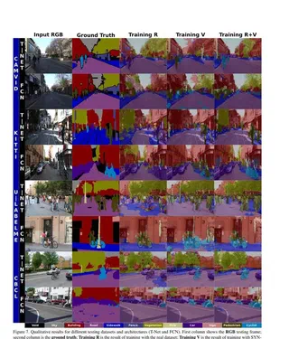 Vision-based semantic segmentation in urban scenarios is a key functionality for autonomous driving. Recent revolutionary results of deep convolutional neural networks (CNNs) foreshadow the advent of reliable classifiers to perform such visual tasks. However, CNNs require learning of many parameters from raw images; thus, having a sufficient amount of diverse images with class annotations is needed. These annotations are obtained via cumbersome, human labor which is particularly challenging for semantic segmentation since pixel-level annotations are required. In this chapter, we propose to use a combination of a virtual world to automatically generate realistic synthetic images with pixel-level annotations, and domain adaptation to transfer the models learned to correctly operate in real scenarios. We address the question of how useful synthetic data can be for semantic segmentation – in particular, when using a CNN paradigm. In order to answer this question we have generated a synthetic collection of diverse urban images, named SYNTHIA, with automatically generated class annotations and object identifiers. We use SYNTHIA in combination with publicly available real-world urban images with manually provided annotations. Then, we conduct experiments with CNNs that show that combining SYNTHIA with simple domain adaptation techniques in the training stage significantly improves performance on semantic segmentation.